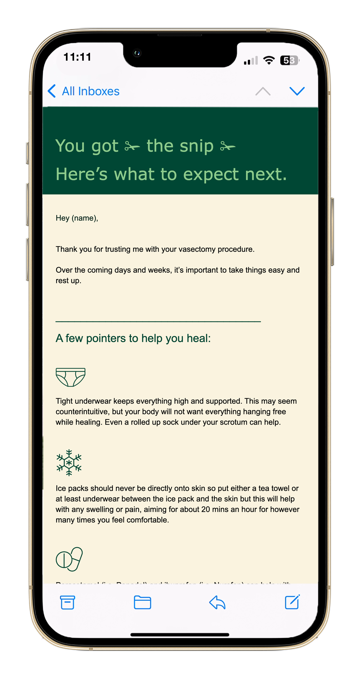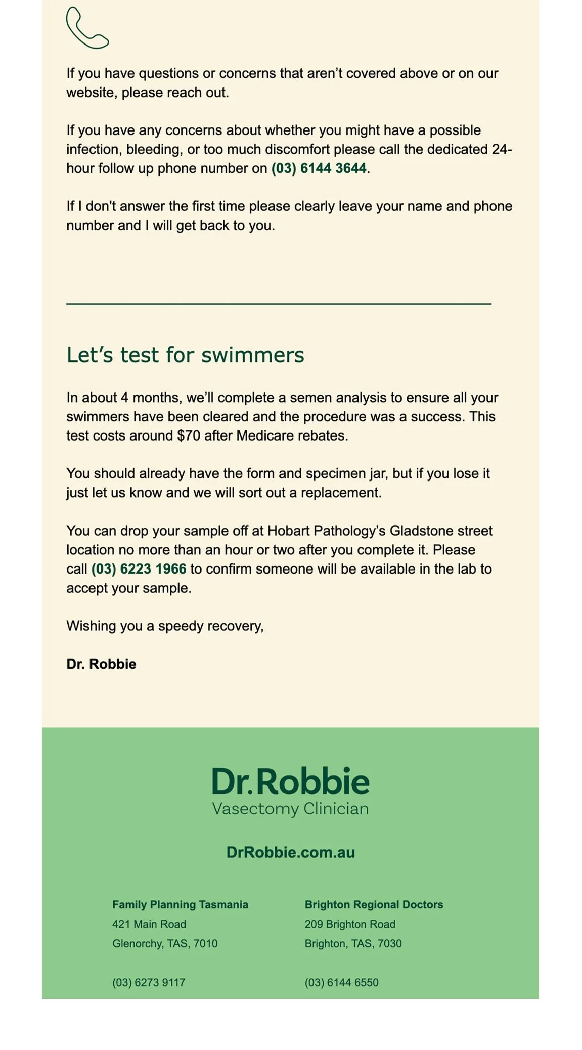 Dr. Robbie is a vasectomy doctor from Tasmania, Australia. I developed his brand voice to reflect how he is as a person – the perfect mix of medical, professional, and fun. Spot the uses of “swimmers'“, “✁ the snip ✁”, and “shooting blanks”… This was fun.