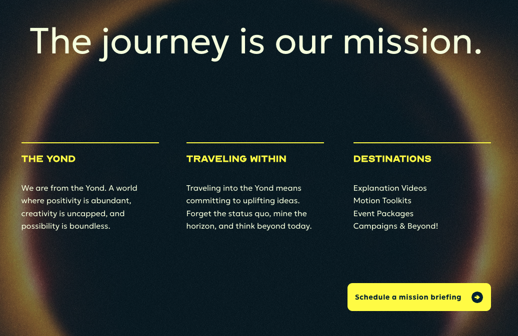 After extensive work creating their brand’s visual style and brand vision, the Yond Studio team needed a little help bringing their brand voice to life. I was able to work with the team to create an About section that felt true to the brand they were building, and a brand lexicon they can use to create captivating copy into the future.